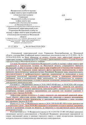 внесенные дополнения в ответ от 12.12.2024 г. № 5010/30-613032-2024, на Ваше