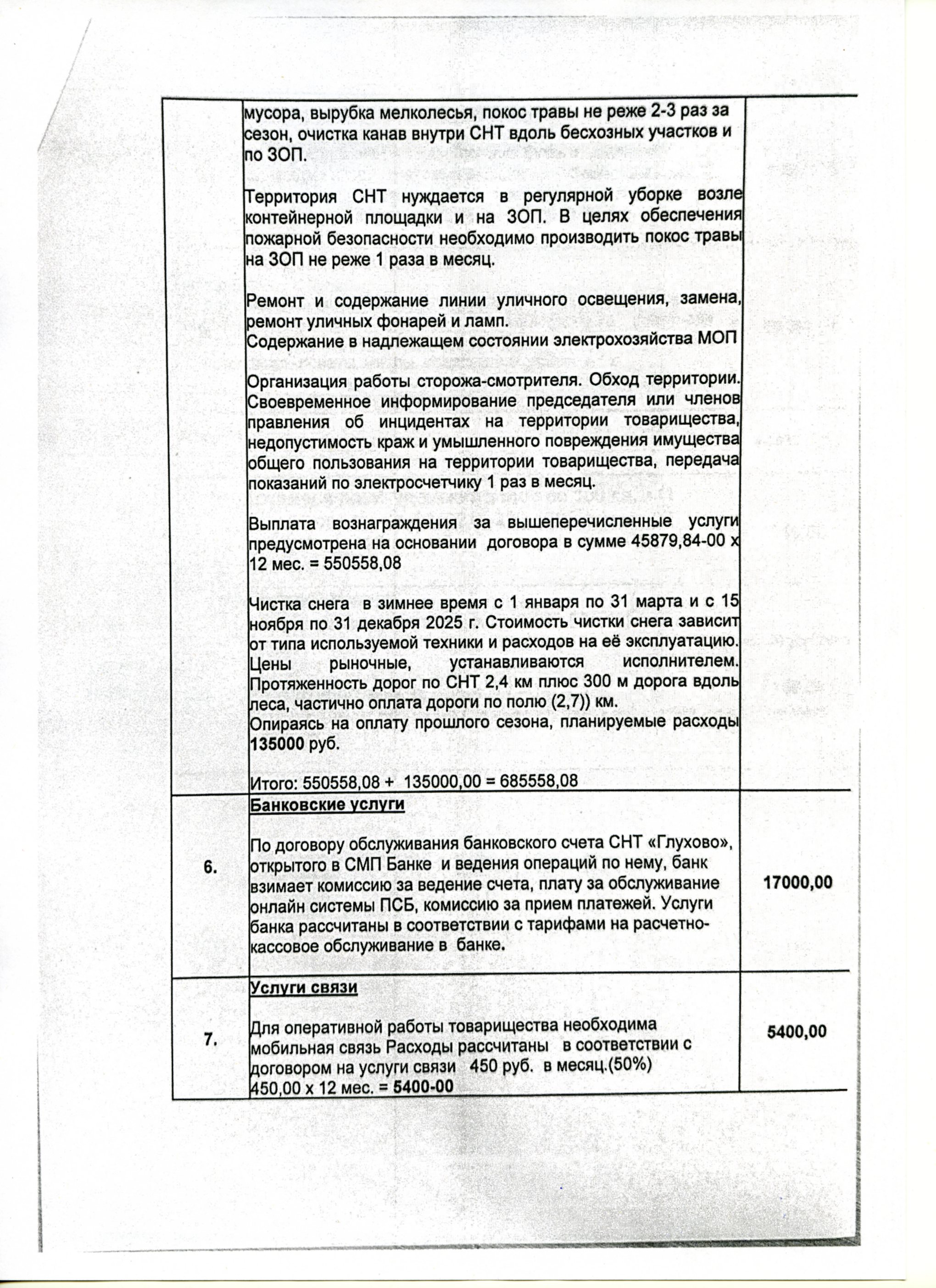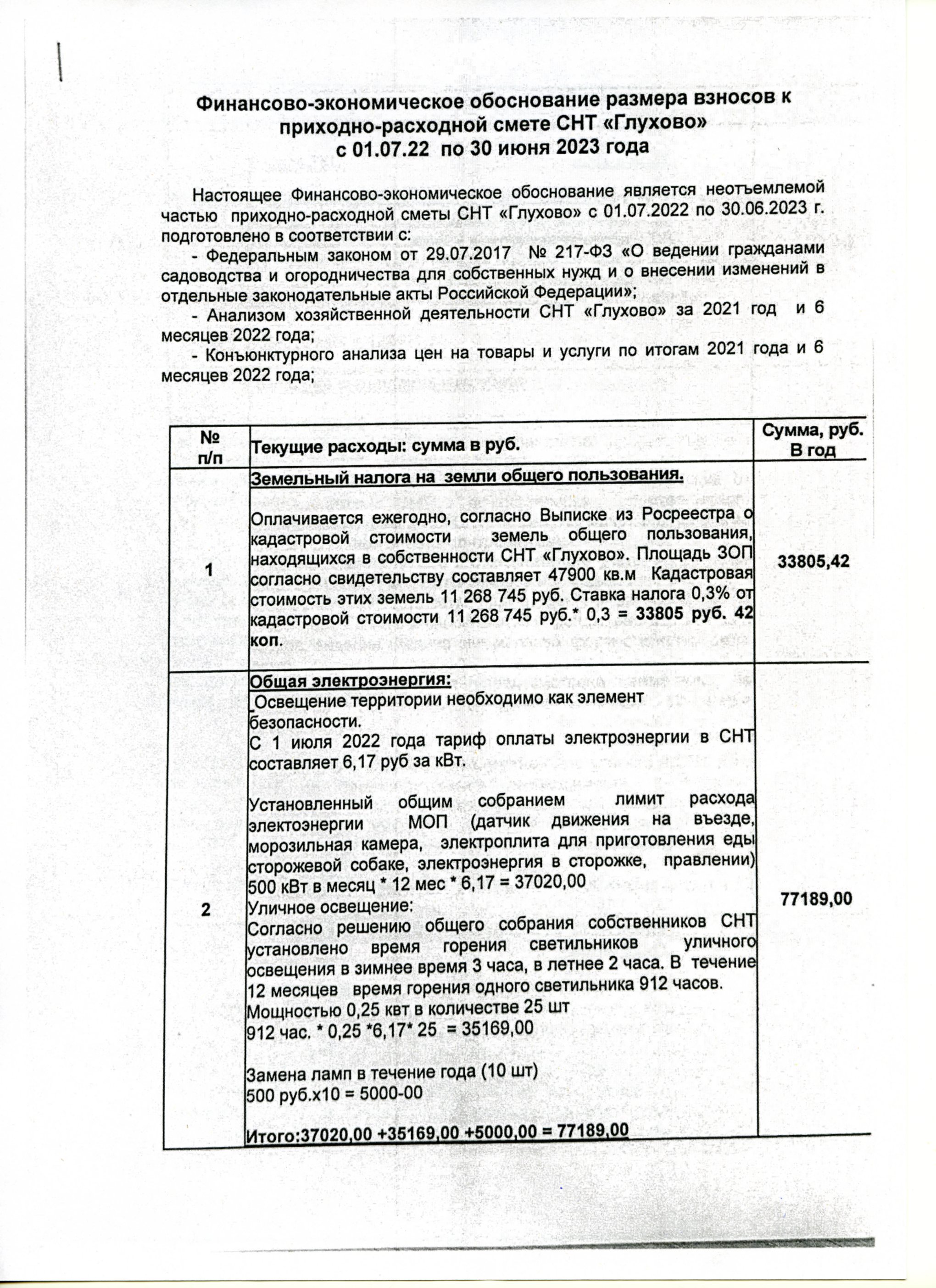 сторожке, правлении) 500 кВт в месяц * 12 мес * 6,17 = 37020,00 Уличное освещение: