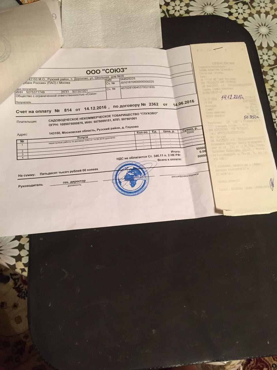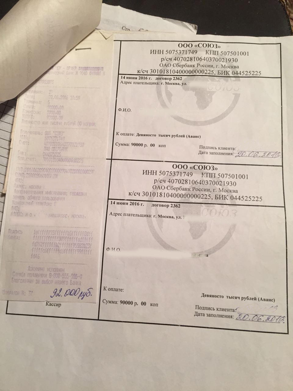 Некоторые квитанции по оплате. Кадастровые работы по договору 2362 от 14.06 2016г.