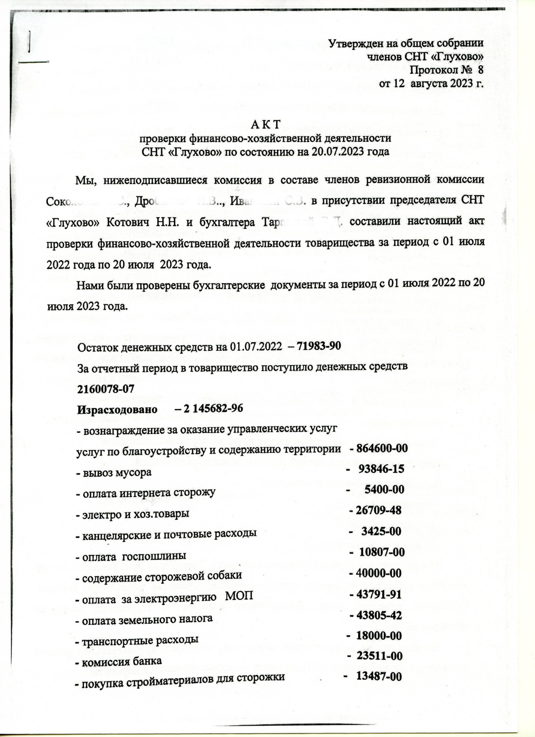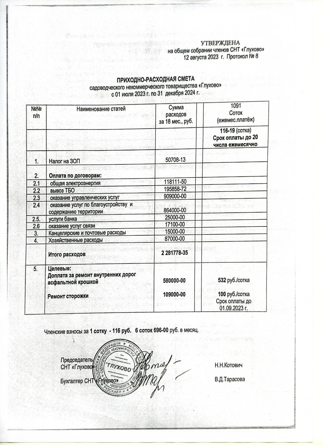 (Список членов СНТ «Глухово» по состоянию на 30 мая 2009 года 153 члена)